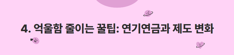 연기연금 등 다양한 전략으로 억울함도 줄일 수 있으니, 내 상황에 맞는 연금 수급법을 똑똑하게 선택하세요!
