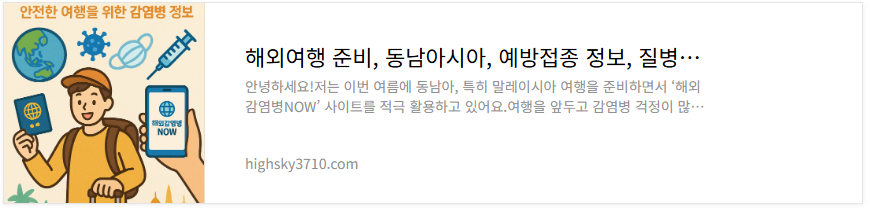 2025.05.28 - [분류 전체보기] - 해외여행 준비, 동남아시아, 예방접종 정보, 질병관리청에서 운영하는 해외감염병NOW 사이트 소개