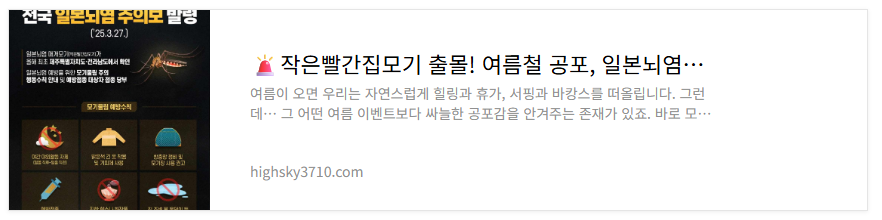 2025.07.16 - [분류 전체보기] - 🚨작은빨간집모기 출몰! 여름철 공포, 일본뇌염은 과연 어떤 병일까?🦟