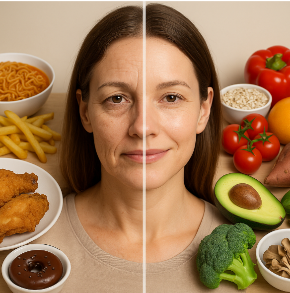 감자튀김, 치킨, 인스턴트 라면… 바쁜 40대에게 유혹적인 음식이죠. 하지만 이런 음식엔 트랜스지방, 포화지방, 방부제, 인공첨가물이 가득합니다. 이런 성분들은 체내에서 활성산소를 늘리고, 피부 세포를 공격해 탄력 저하, 주름, 칙칙함을 유발합니다.