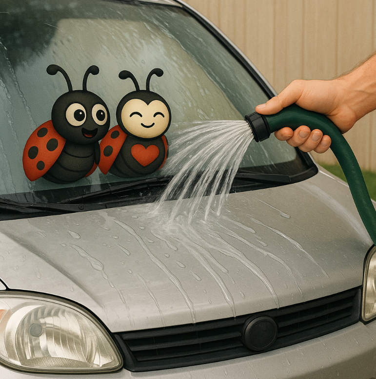 | 차량 관리 | 자동차에 붙은 러브버그는 신속히 세차해 오염이나 부식을 방지한다. |