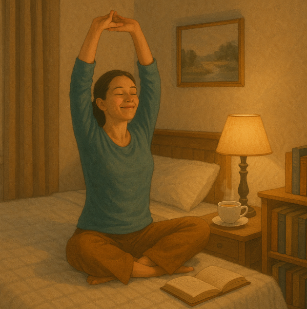 잠들기 전에는 가벼운 이완 운동이 도움이 됩니다.