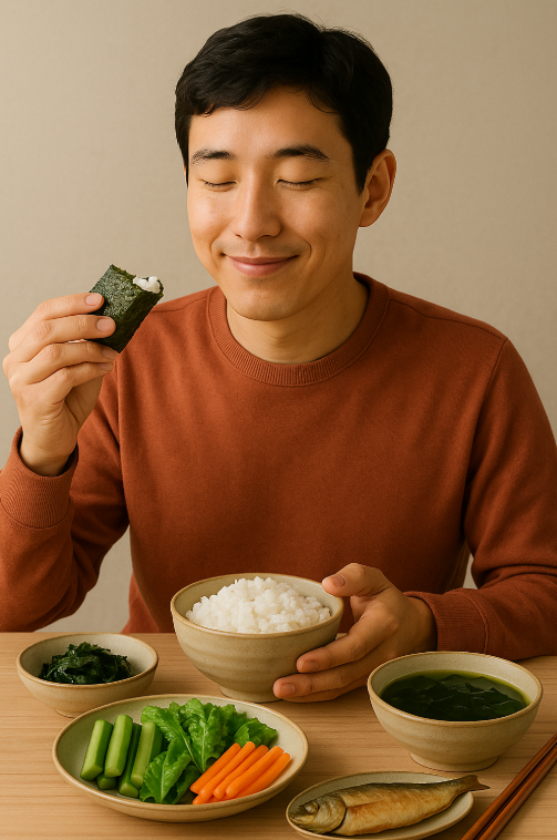 김과 밥만 먹지 말고, 신선한 채소, 나물, 두부, 생선 등 다양한 반찬과 함께 먹으면 소화 부담이 줄어듭니다.