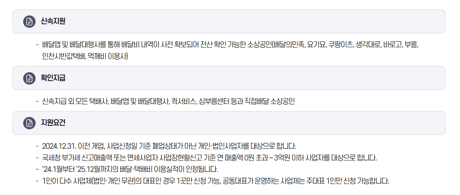 특히 영세 소상공인은 배달·택배비로 인해 경영에 큰 어려움을 겪는 경우가 많죠. 이런 점을 반영해 정부에서는 2025년에도 소상공인 배달·택배비 지원사업을 지속적으로 시행하고 있습니다.