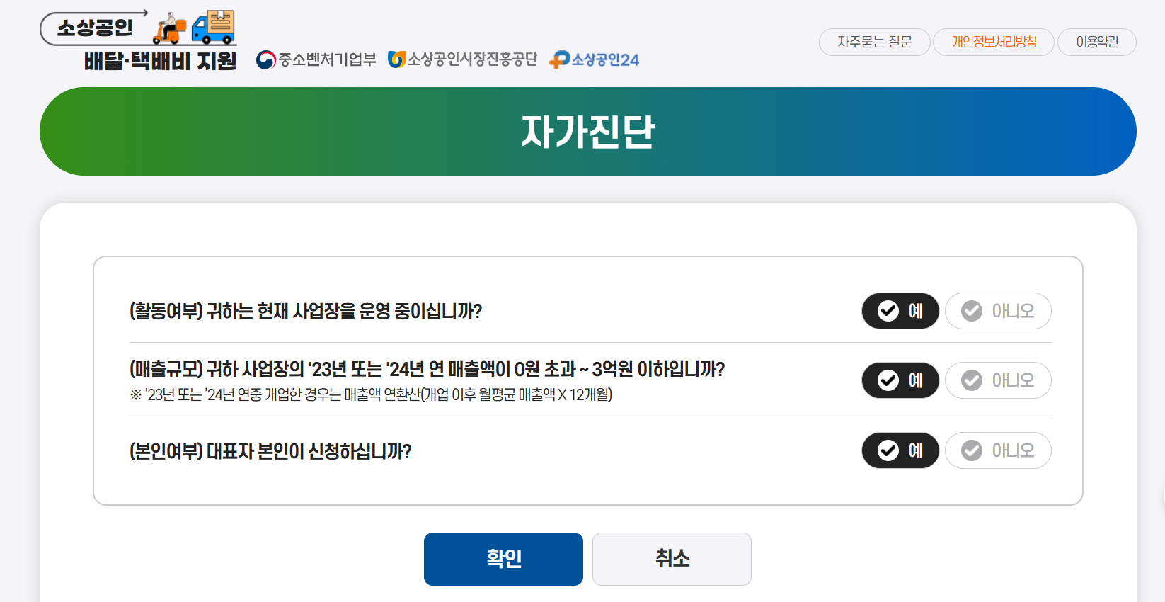 - 자가진단: 내 가게가 지원 대상인지 확인
