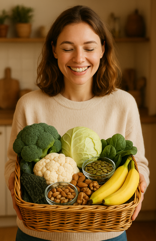 - 비타민 B6: 도파민, 세로토닌 합성에 필요. 우울, 짜증, 예민함 완화에 효과적