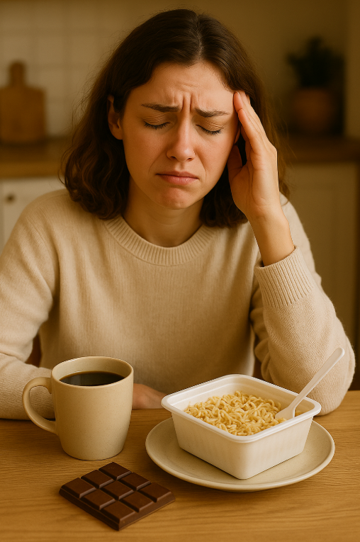 - 인스턴트, 정제 탄수화물, 단 음식, 카페인, 알코올 줄이기: 혈당과 호르몬 변화에 영향을 줄 수 있으니 주의하세요.
