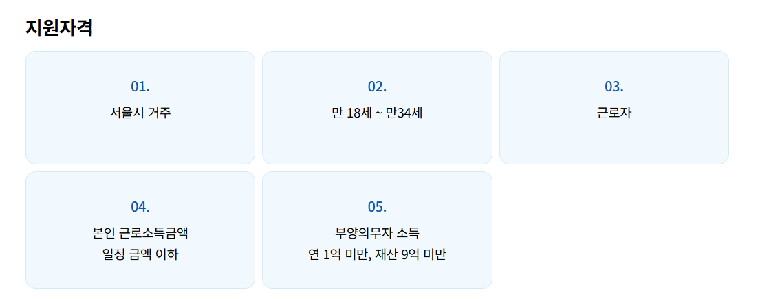 · 나이: 만 18세 이상 ~ 만 34세 이하(군 복무자는 복무 기간만큼 나이 제한이 늘어나요. 예를 들어, 2년 동안 군 복무했다면 만 36세까지 신청 가능)