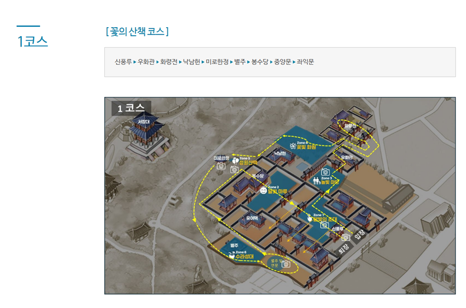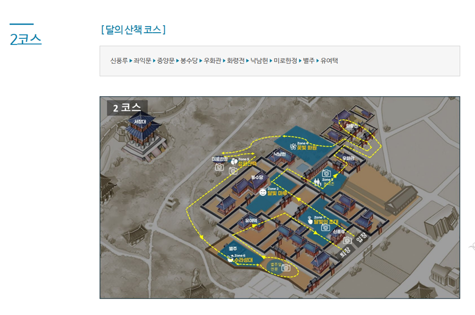 올해 야간개장은 아래와 같이 6개의 테마 공간으로 꾸며진다고 해요.
