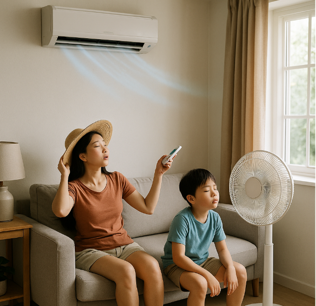 - 냉방 모드: 실내 온도를 빠르게 낮춤, 실외기 풀가동, 전력 소모 ↑