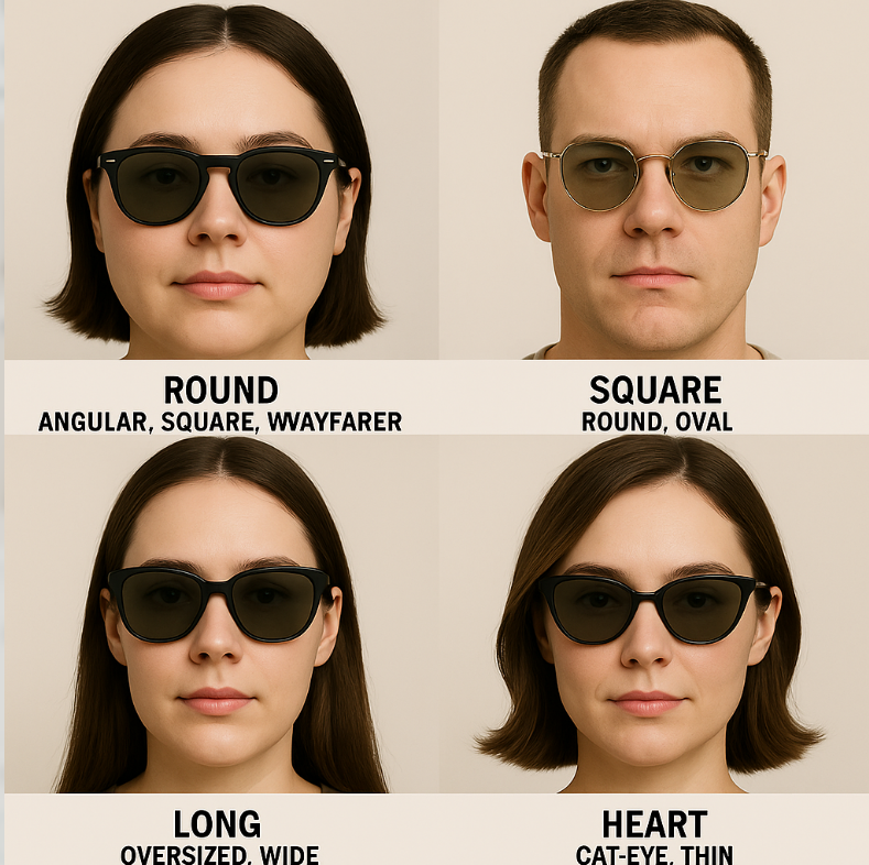 | 긴 얼굴 | 오버사이즈, 넓은 프레임 | 얇고 작은 프레임 |