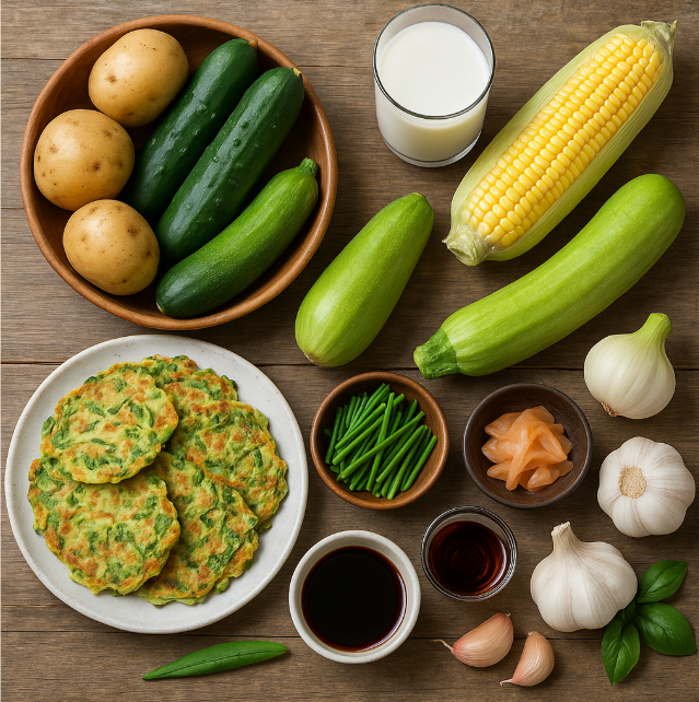 감자, 오이, 애호박, 옥수수 등은 수분과 비타민이 풍부해 여름 반찬으로 최고입니다. 특히 애호박은 장마철 습기를 잡아주고 소화 흡수가 잘 돼요. - 김치부침개, 부추전 등 익힌 요리
