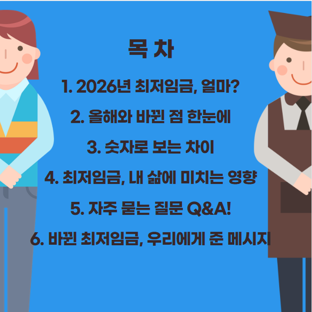 2026년 최저임금 개정안을 ‘2025년 기준’과 꼼꼼하게 비교해 보고,일상에 미치는 영향을 단번에 파악할 수 있도록 알려드릴게요.