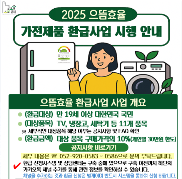 “가전 바꿀 땐, 돈도 돌려받는 으뜸효율 환급사업 꼭 챙기세요!”